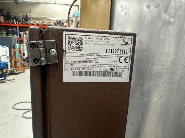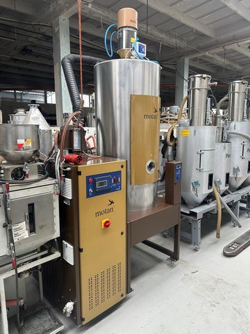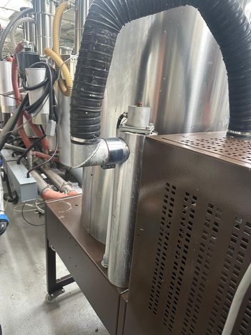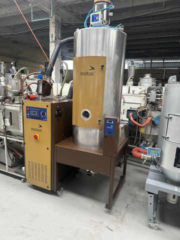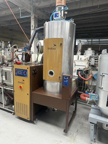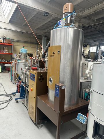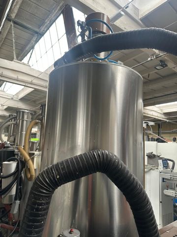 Suszarnia z 2 sitami molekularnymi, zaciągiem tworzywa, 1-silosowa Pojemność silosu: 400 litrów Sita pracują przemiennie, podczas procesu suszenia jedno sito pracuje a drugie regeneruje się Silos hermetycznie wyizolowany z własnym sterowaniem