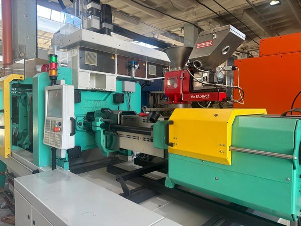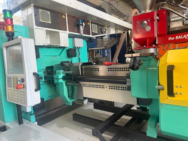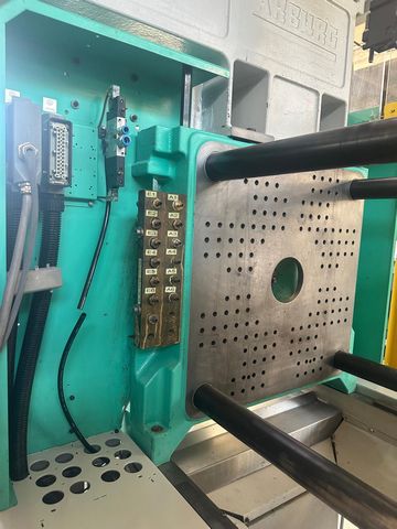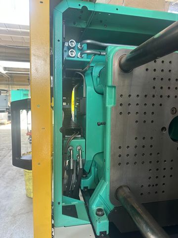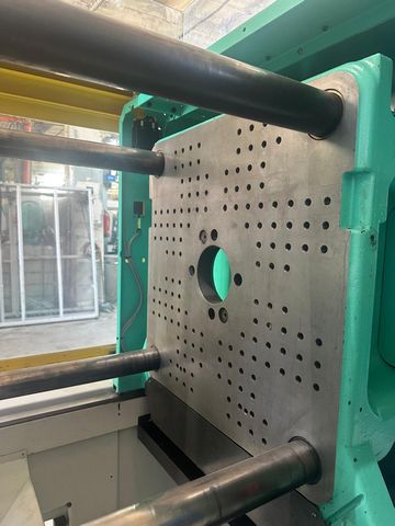 Siła zamknięcia: 100 t Prześwit między kolumnami: 470x470 mm Wymiary płyt stołu max: 637x637 mm Wypychacz: elektryczny Układ zamknięcia: kolanowy |