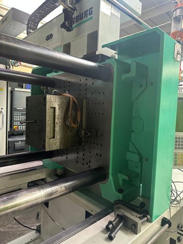 Siła zamknięcia: 200 t Prześwit między kolumnami: 570x570 mm Wymiary płyt stołu max: 795x795 mm Wypychacz: elektryczny Układ zamknięcia: kolanowy |