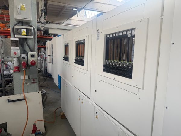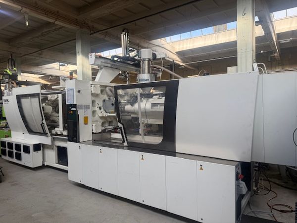 Siła zamknięcia: 280 t Prześwit między kolumnami: 780x780 mm Wymiary płyt stołu max: 1100x1100 mm Wypychacz: elektryczny Układ zamknięcia: kolanowy |