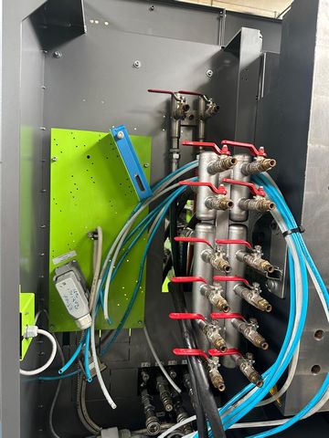 Średnica ślimaka: 70 mm Waga wtrysku: ca. 1100 g Ciśnienie wtrysku: 2000 bar Objętość wtrysku: 1212 ccm |