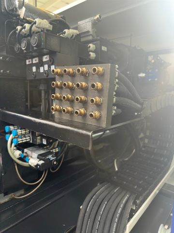Siła zamknięcia: 160 t Prześwit między kolumnami: 470x470 mm Wymiary płyt stołu max: 700x700 mm Wypychacz: hydrauliczny Układ zamknięcia: kolanowy |