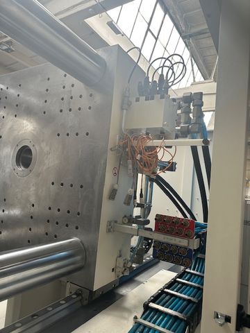 Siła zamknięcia: 420 t Prześwit między kolumnami: 800x800 mm Wymiary płyt stołu max: 1270x1200 mm Wypychacz: hydrauliczny Układ zamknięcia: hydrauliczny |