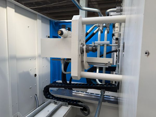 Średnica ślimaka: 75 mm Waga wtrysku: 1125 g Ciśnienie wtrysku: 1635 bar Objętość wtrysku: 1237 ccm |