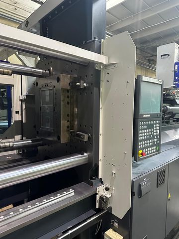Siła zamknięcia: 350 t Prześwit między kolumnami: 720x720 mm Wymiary płyt stołu max: 1040x1060 mm Wypychacz: hydrauliczny Układ zamknięcia: kolanowy |
