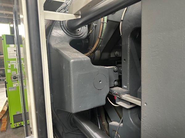 Siła zamknięcia: 350 t Prześwit między kolumnami: 720x720 mm Wymiary płyt stołu max: 1040x1060 mm Wypychacz: hydrauliczny Układ zamknięcia: kolanowy |
